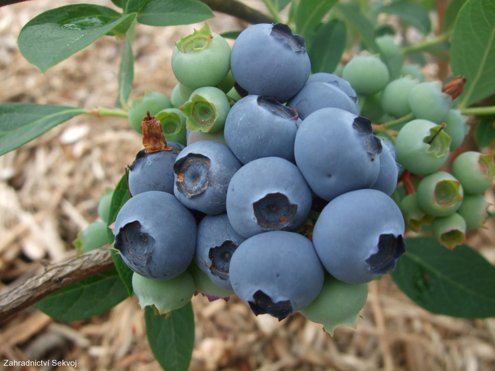 Plody: mimořádně velké (až 2 cm v průměru), pevné, modré, s tenkou slupkou a výbornou sladkou chutí