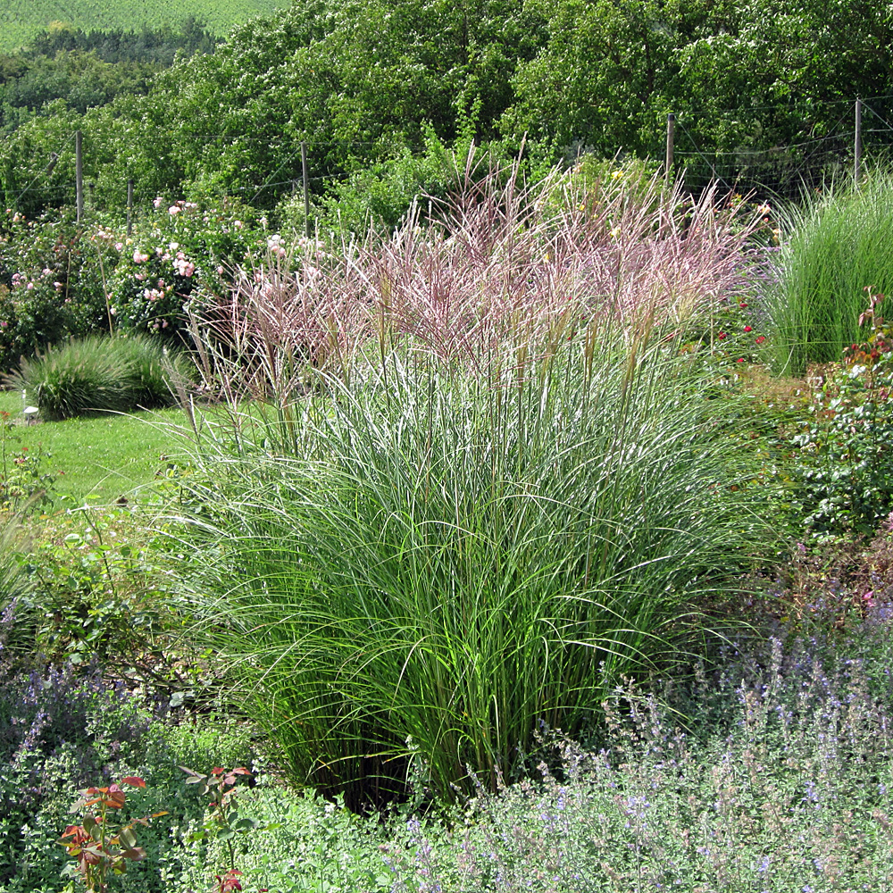 Miscanthus sinensis 'Champagner' je vzpřímená okrasná tráva s jemnými, stříbřitě narůžovělými…