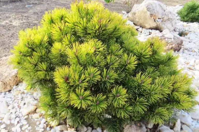 Jedna z nejkrásnějších odrůd horské borovice. Vyznačuje se nízkým, plazivým vzrůstem až 1 m vysokým a neobvyklým jehličím. Jehličí dlouhé, 3-7 cm, na slunečné straně mírně ohnuté a ve stínu rovné. Na koncích mají krásnou žlutou barvu. Zajímavé je, že na podzim se barva stává extrémně intenzivní a v létě se rostlina stává žlutozelenou. Odrůda neobvyklá svým vzhledem. Vypadá obzvlášť krásně v zasněžené scenérii a dodá vaší zahradě teplo.