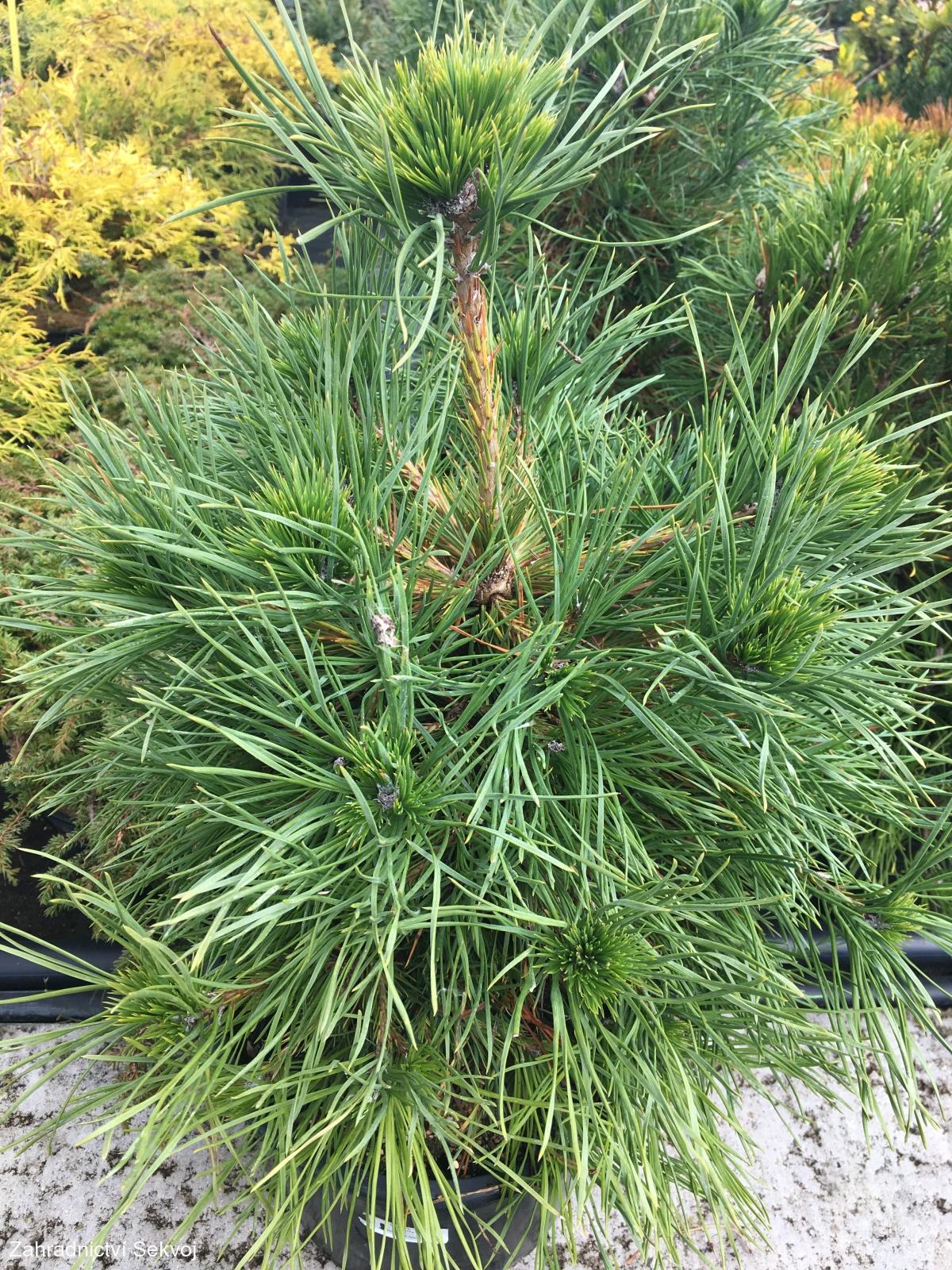 hustá borovice s opravdu pomalým růstem. V prvních letech roste kulovitě,