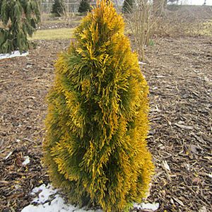 Pomalu rostoucí keř široce kuželovitého tvaru, dekorativní díky jasně žluté barvě jehličí.